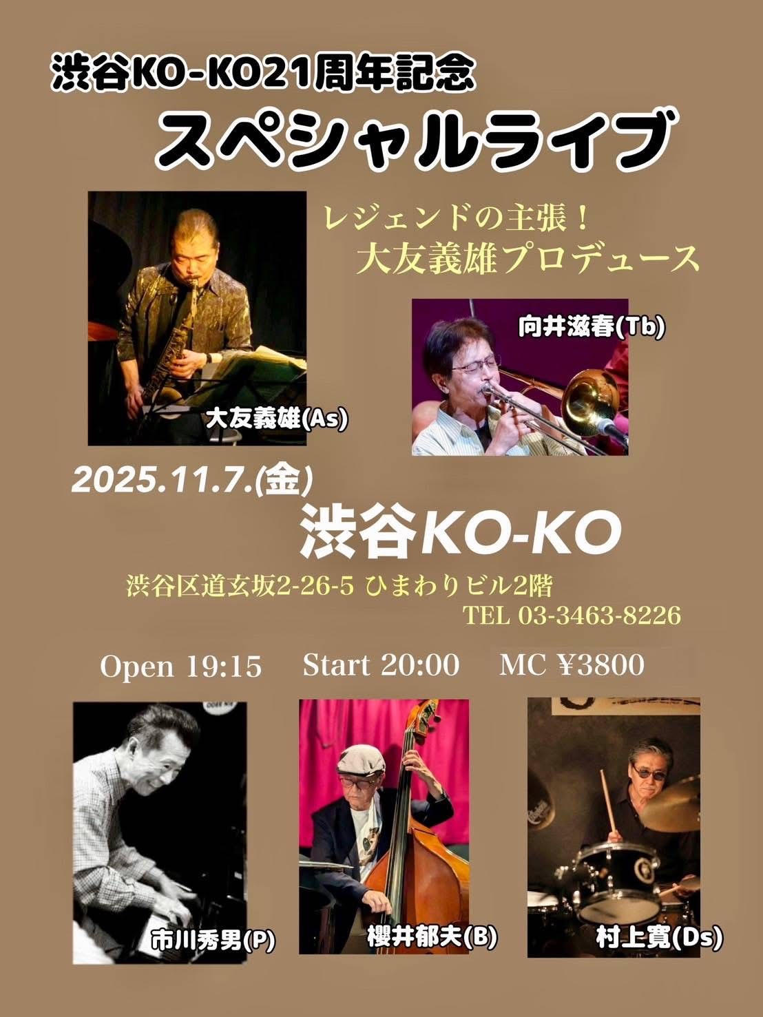 大友義雄(as)向井滋春(tb)納谷嘉彦(pf)村上寛(ds)11/30(土) 新宿 ほうでなす